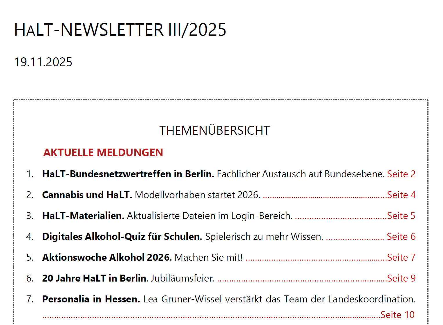 HaLT – Hart am LimiT ist ein kommunales Alkoholpräventionsprogramm für Kinder und Jugendliche.