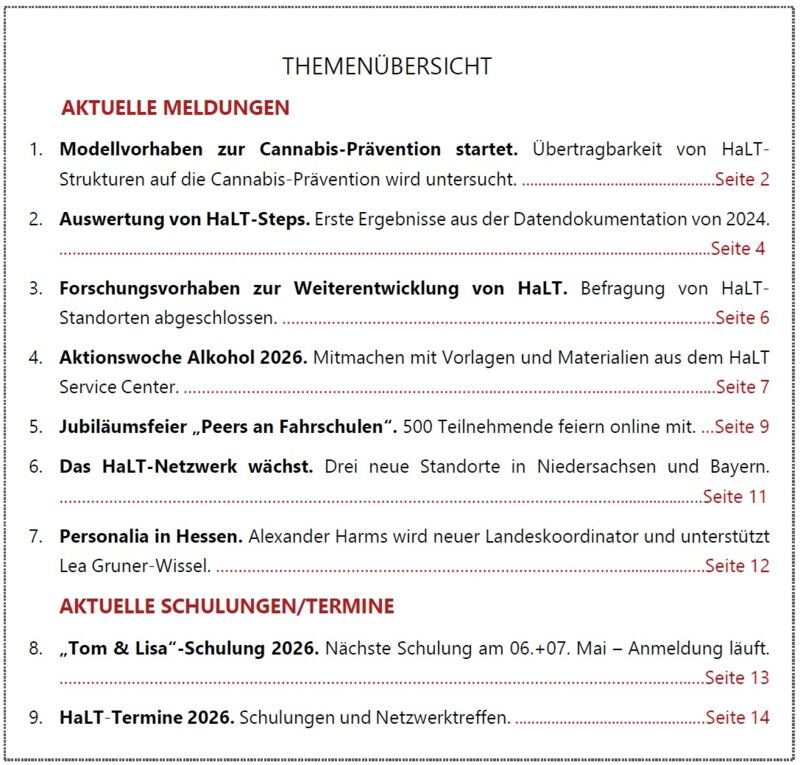 Der HaLT-Newsletter I/2026 ist online. Informieren Sie sich über aktuelle Entwicklungen, Veranstaltungen und Materialien.